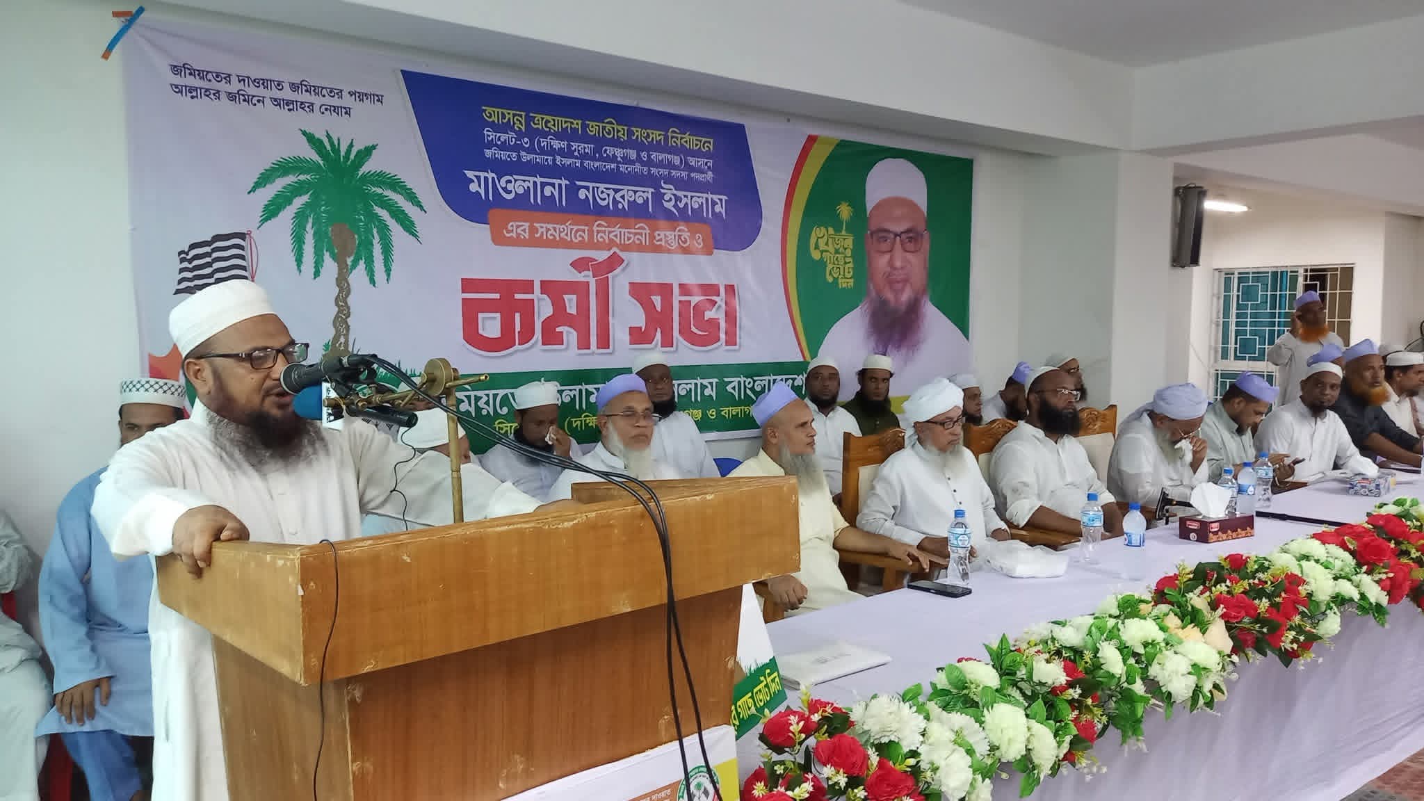সিলেট-৩ আসনে জমিয়তের মাওলানা নজরুল ইসলামের সমর্থনে নির্বাচনী প্রস্তুতি ও কর্মীসভা অনুষ্ঠিত